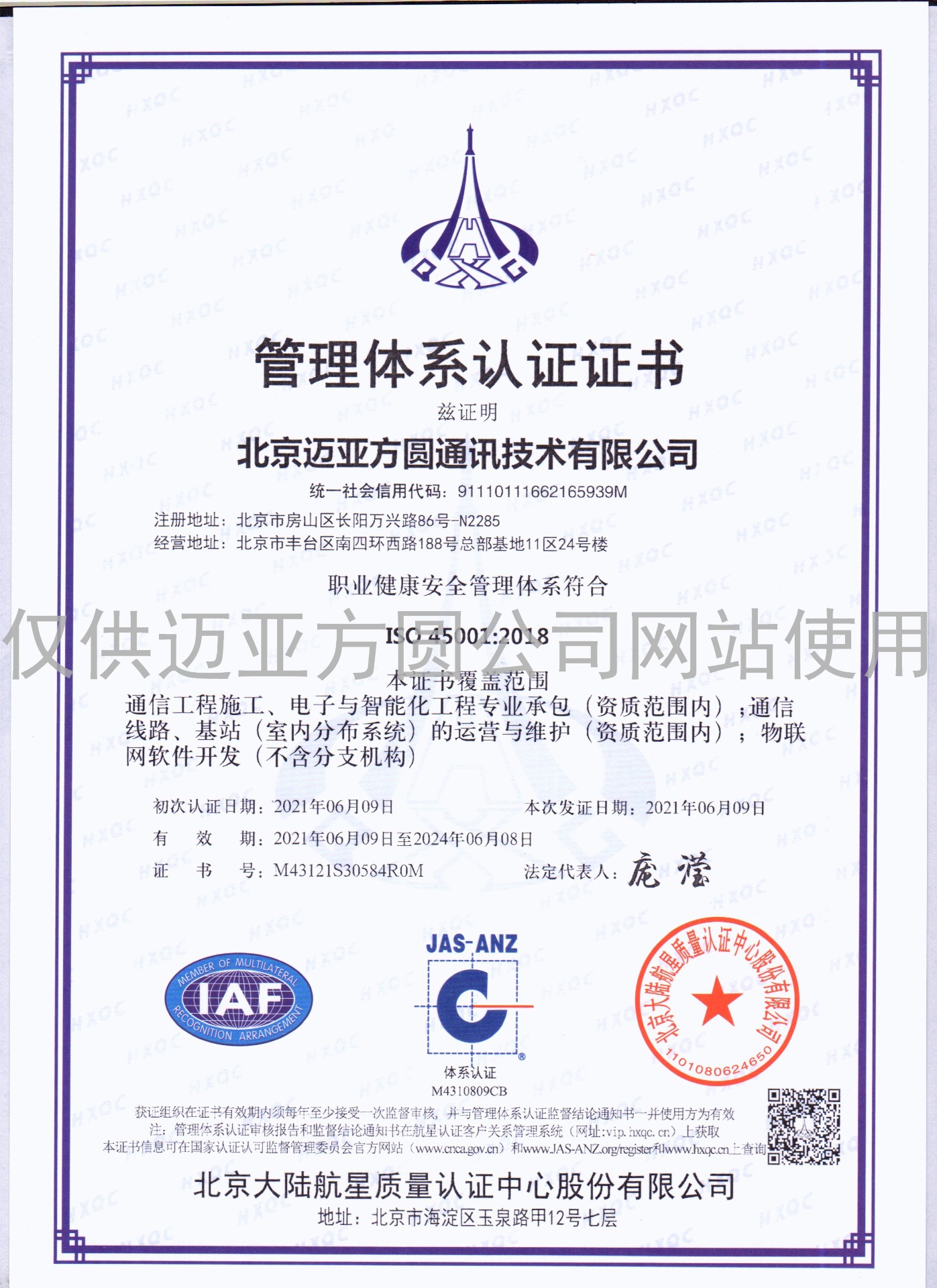 管理体系认证证书