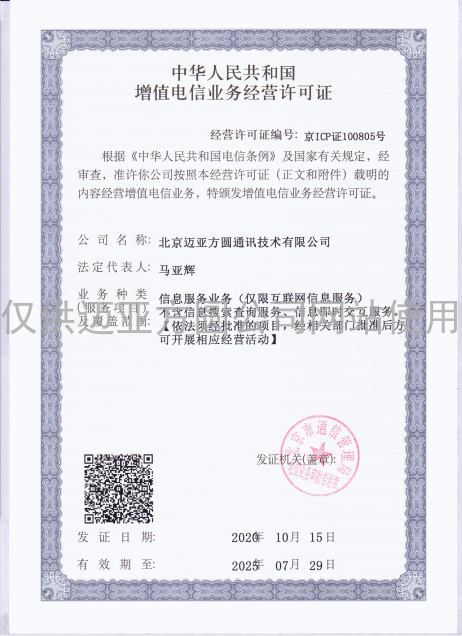 增值电信业务经营许可证